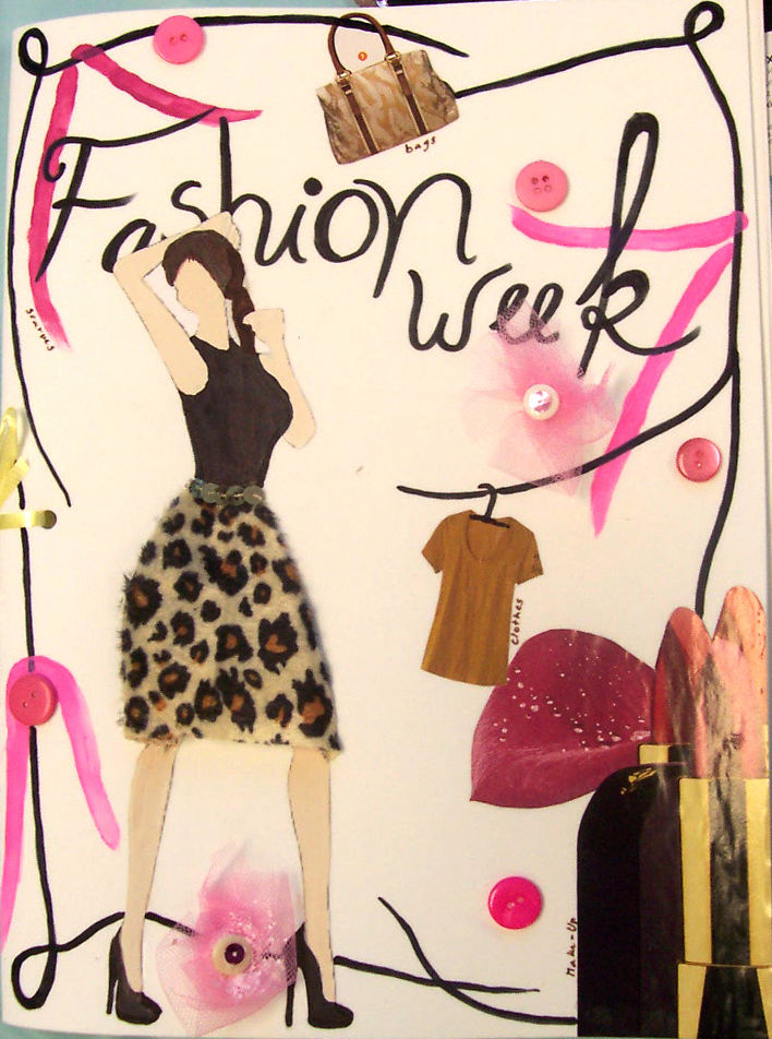 This class was held during New York's Fashion Week. Students explored the realm of fashion and design. Students created magazine covers using their own drawings and cut outs. The class was then split into groups to design and construct a couture dress made of tissue paper and various materials.